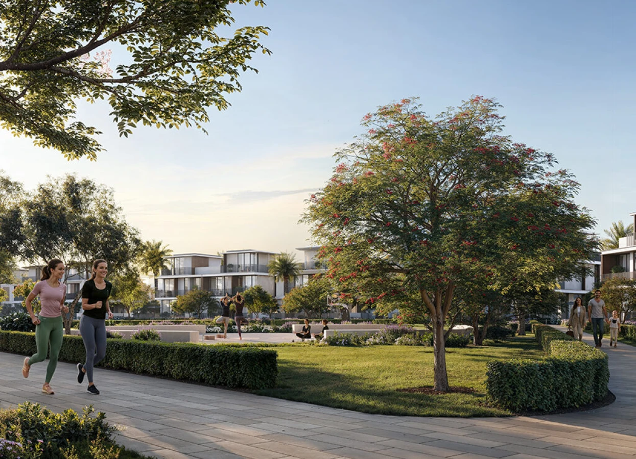 - Community spans 5.54 million sq m, featuring a 5,600 sq m Arabian-style clubhouse, jogging tracks, themed parks, and wellness facilities.
