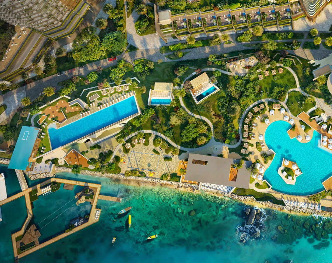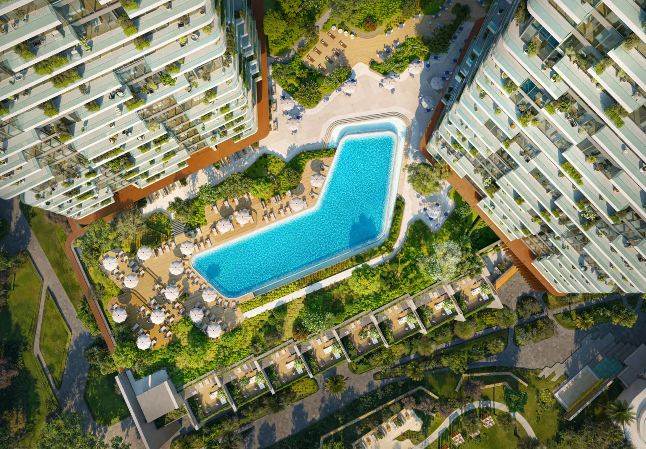 Amenities: State-of-the-art gym, cinema, library, outdoor yoga, and podium pool areas.
